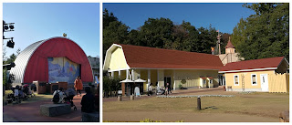 We followed the path up a hill where there was a children's playground. Nothing much else for us to see here, so we went back down and made our way back to the center of the park. It was time to check out the exhibitions inside the Kokemus building.